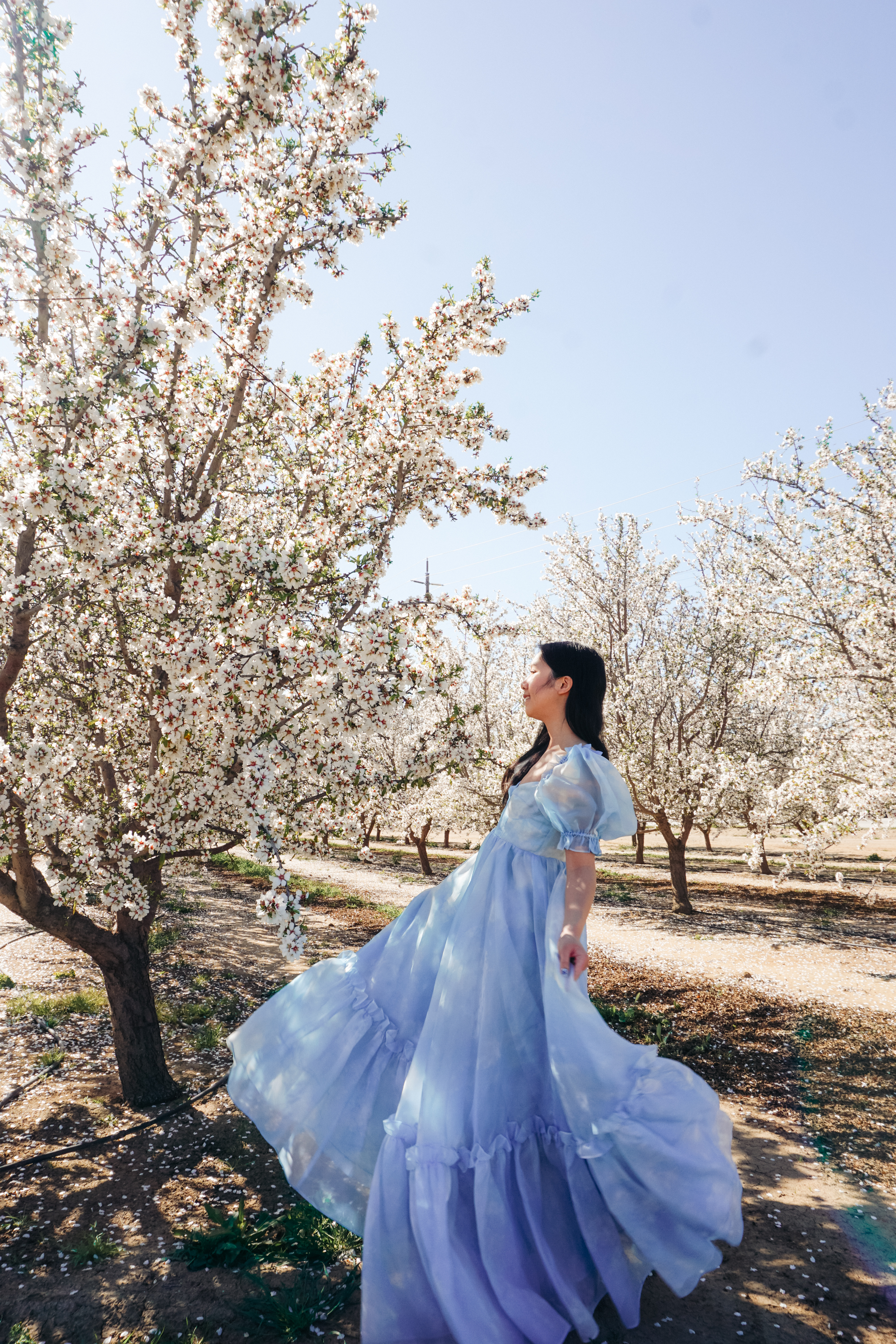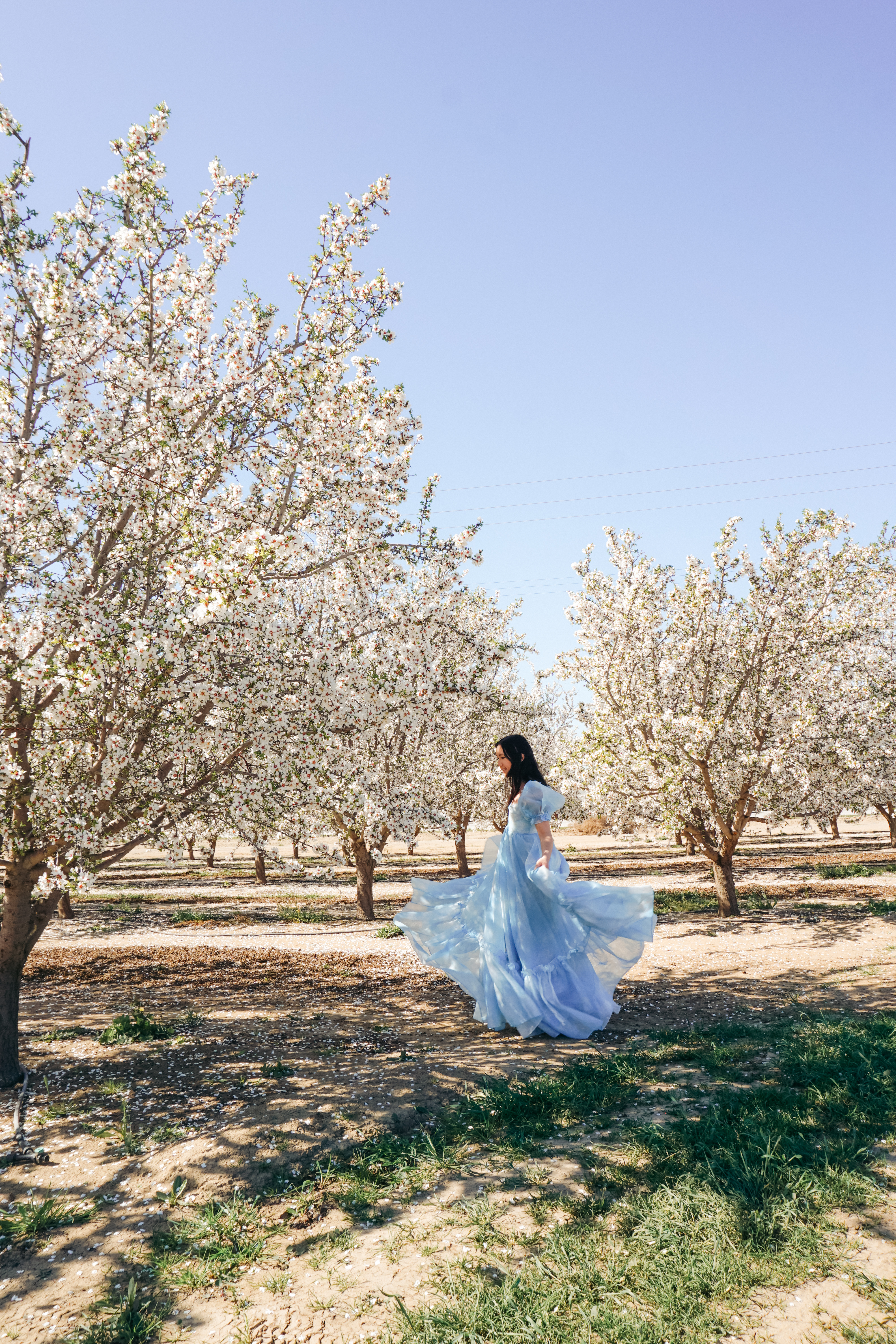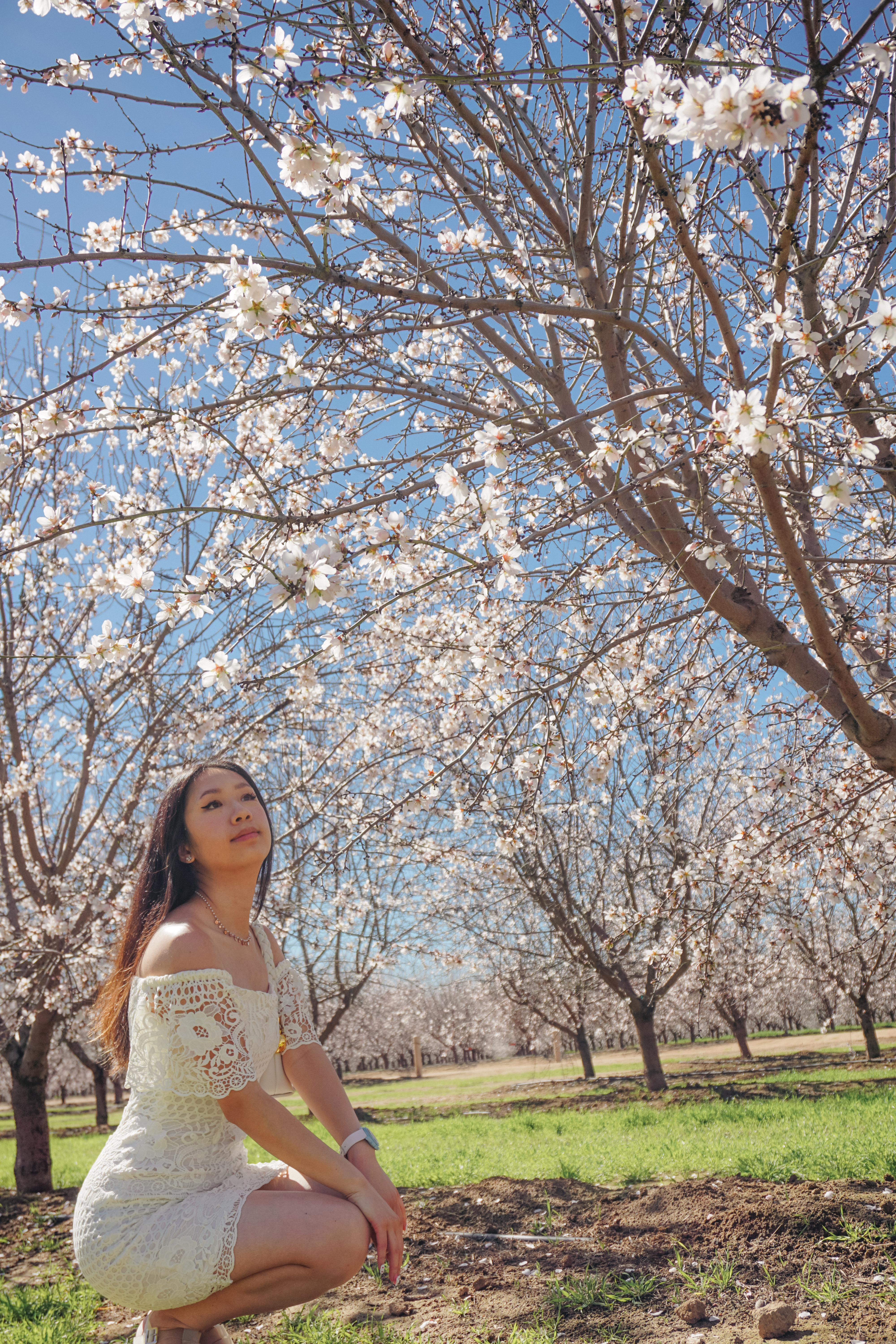 You may see people telling you that the almond blossoms are located throughout most of Bakersfield, and it’s true! As you drive along the I-5 highway to reach the city, you will see almond trees blossoming on both sides of the highway and it’s gorgeous! You can pull your car over to the side (please find a safe place to do so) and snap some quick photos. There are also plenty of orchards and scattered trees within the city, and you can find spots to safely pull over onto a roadside to see them.