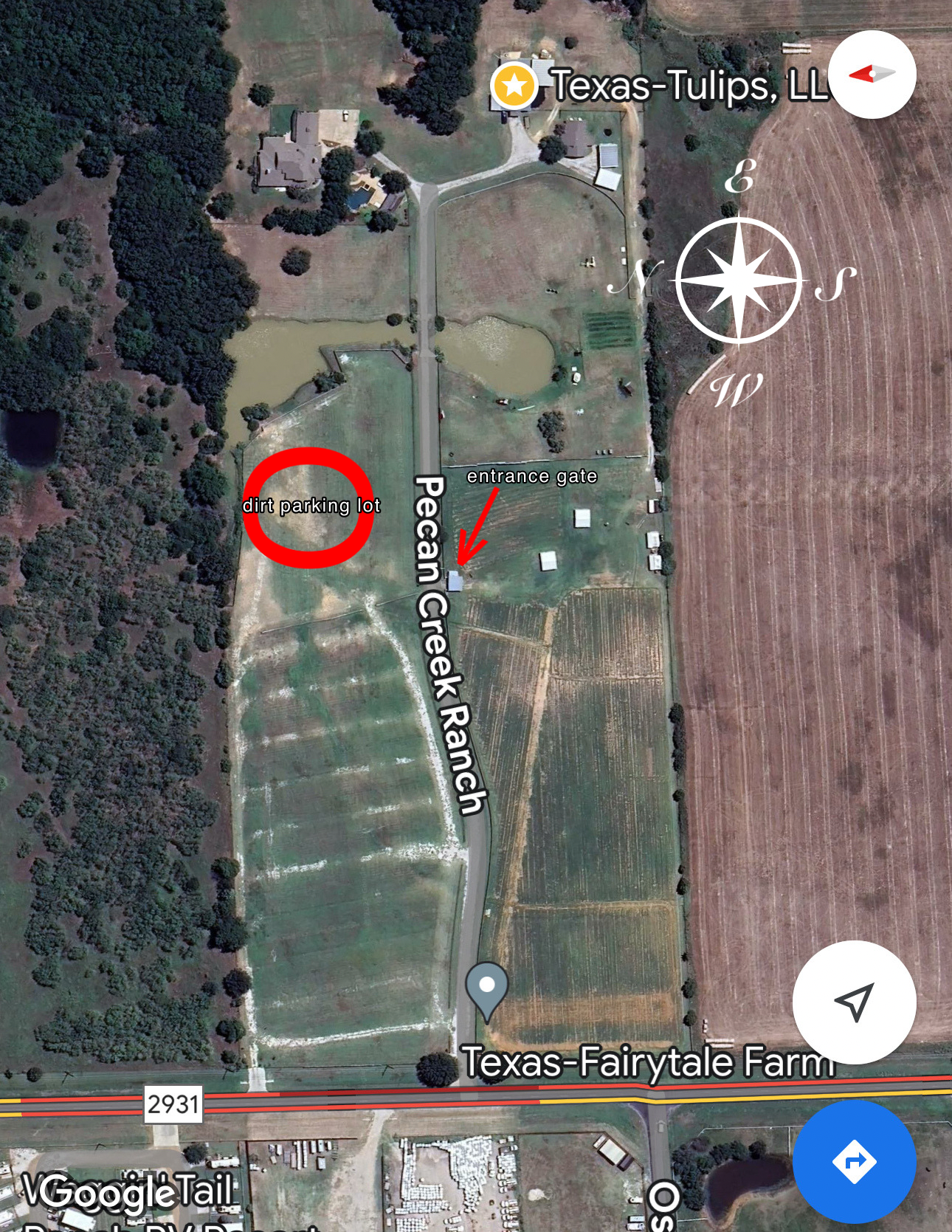 Texas-Tulips is located at 10656 FM 2931, Pilot Point, TX 76258. Parking is free and right beside the tulip field.